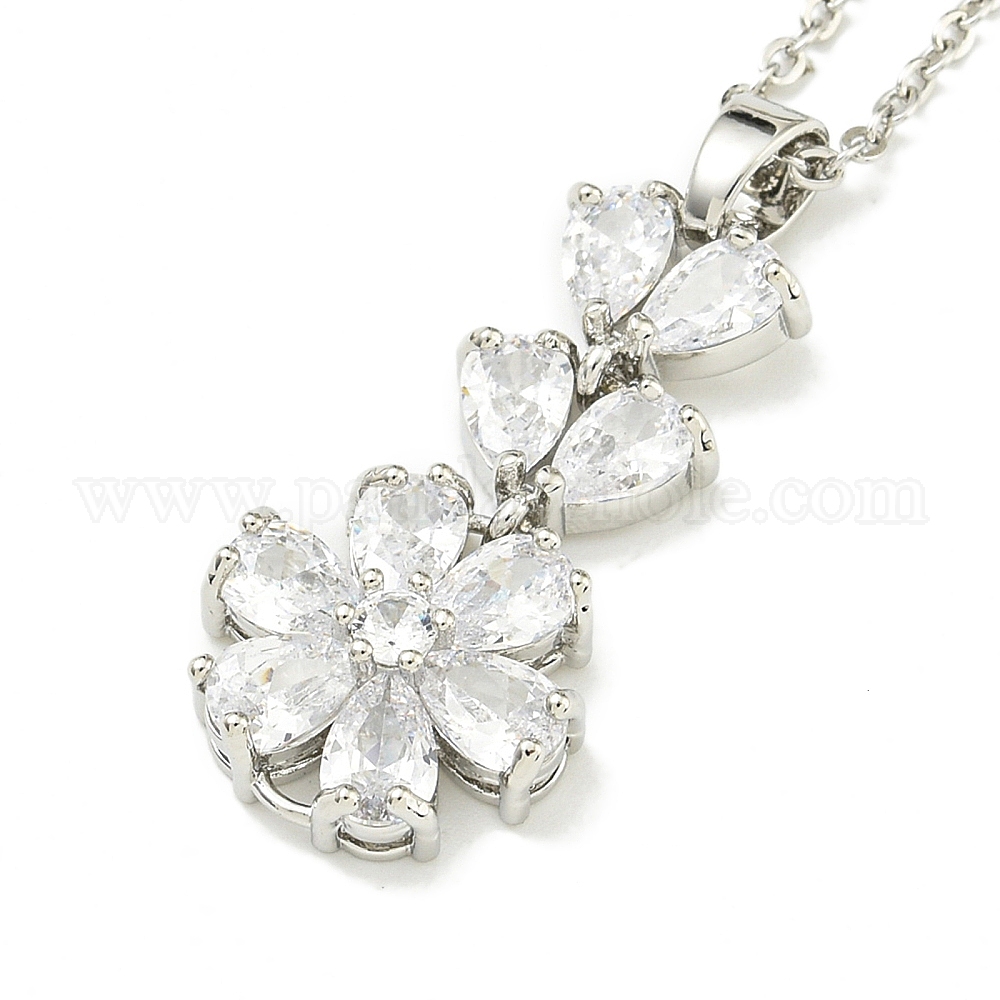 304 из нержавеющей стали кабель цепи ожерелья, латунные прозрачные кубические циркониевые ожерелья с подвесками в виде цветка