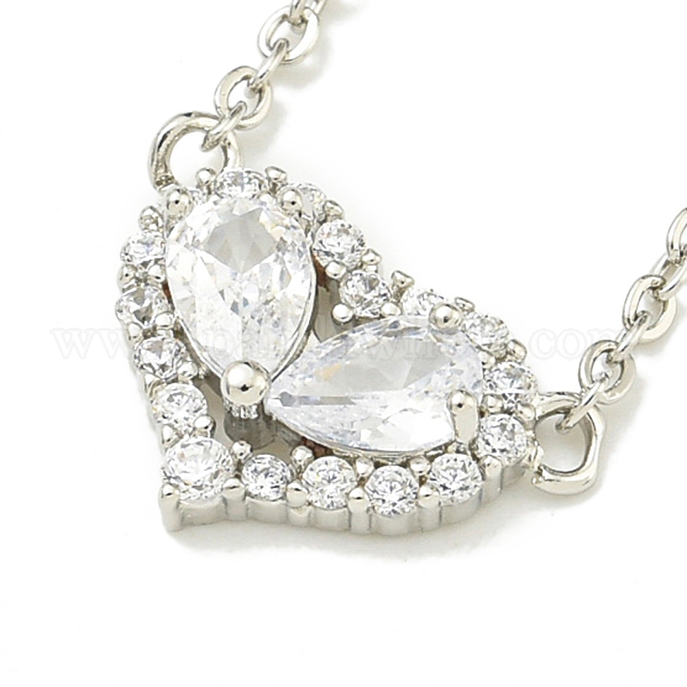 304 из нержавеющей стали кабель цепи ожерелья, латунные прозрачные кубические цирконии ожерелья с подвеской в форме сердца