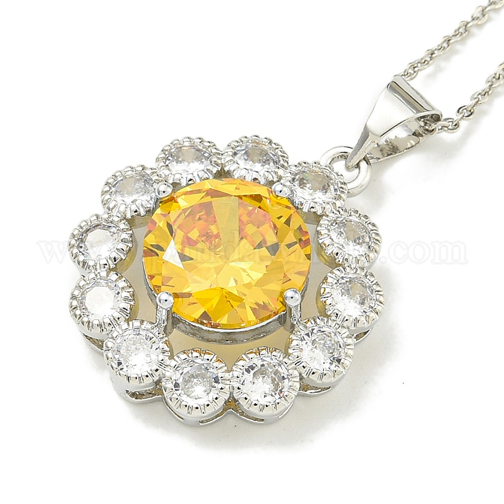 304 из нержавеющей стали кабель цепи ожерелья, ожерелья с подвеской-цветком из прозрачной и золотой латуни с кубическим цирконием
