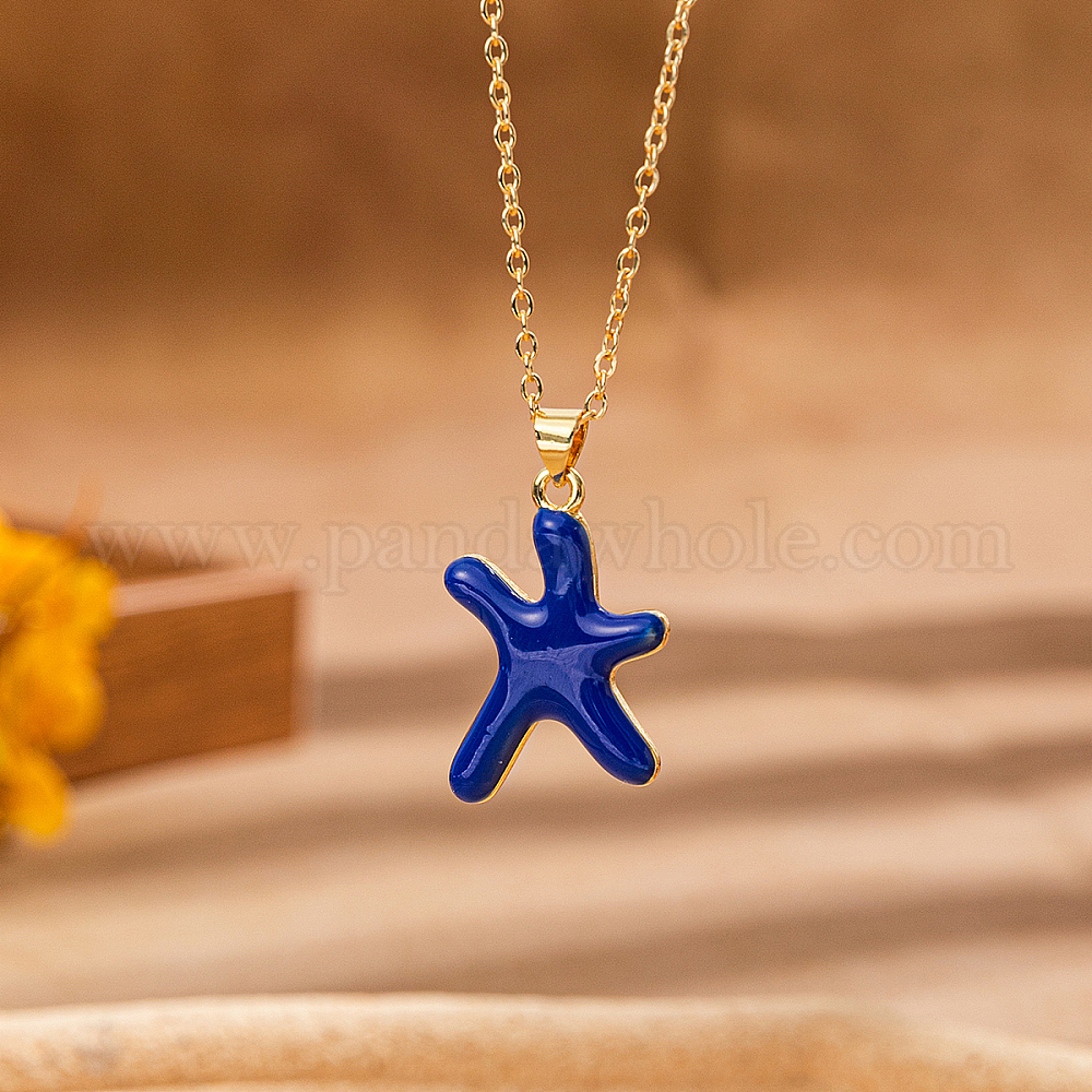 Ожерелье с подвеской в виде морской звезды в стиле отпуска на океанском пляже с эмалью из латуни (02X7HB)