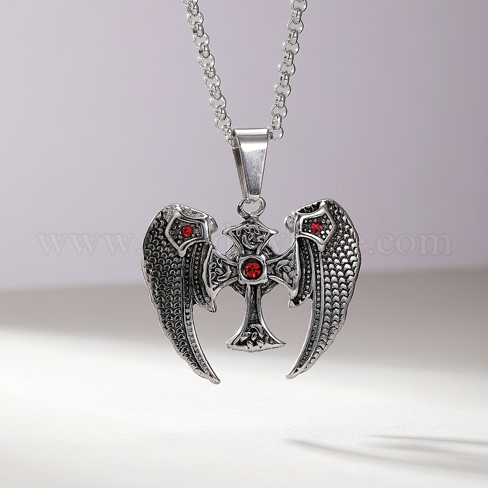 Ожерелье с подвеской в виде крыла ангела из нержавеющей стали с кубическим цирконием для мужчин