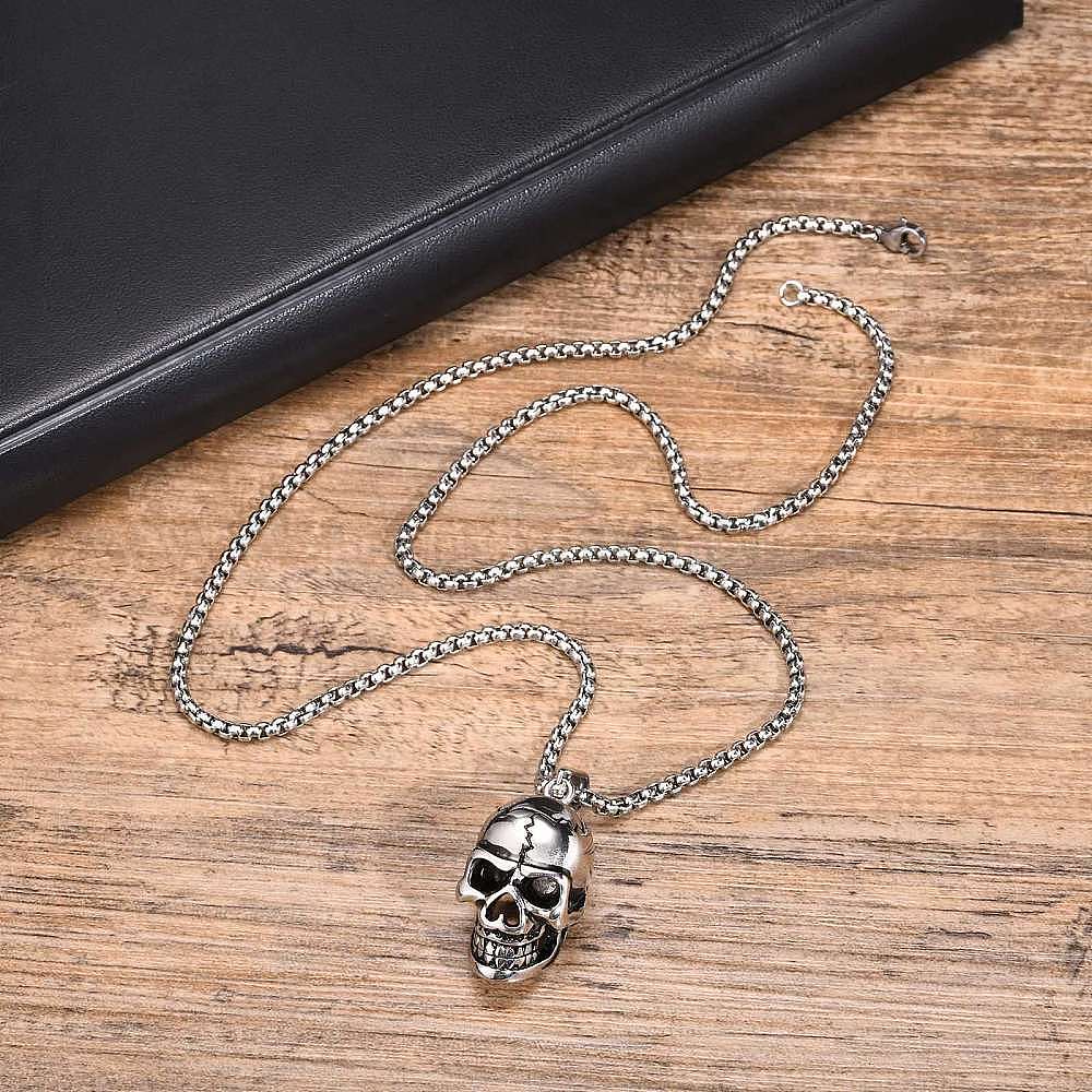 • Античный Серебристый & Цвет Нержавеющей Стали Хеллоуин череп подвеска из нержавеющей стали коробка цепи ожерелья для мужчин, старинное серебро и цвет нержавеющей стали, 23.62 дюйм (60 см)