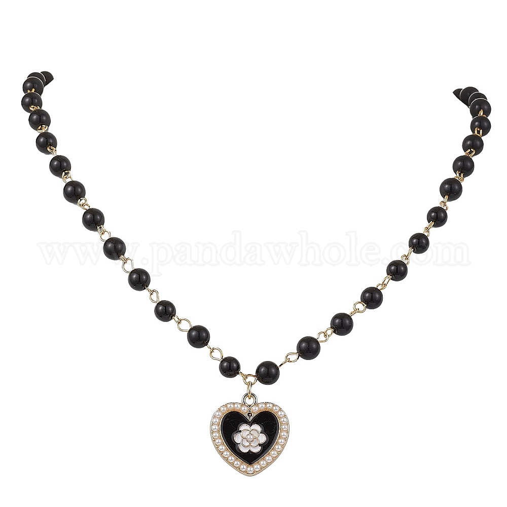 Ожерелья с подвесками из эмали в форме сердца, ожерелья из натурального обсидиана с круглыми бусинами ручной работы