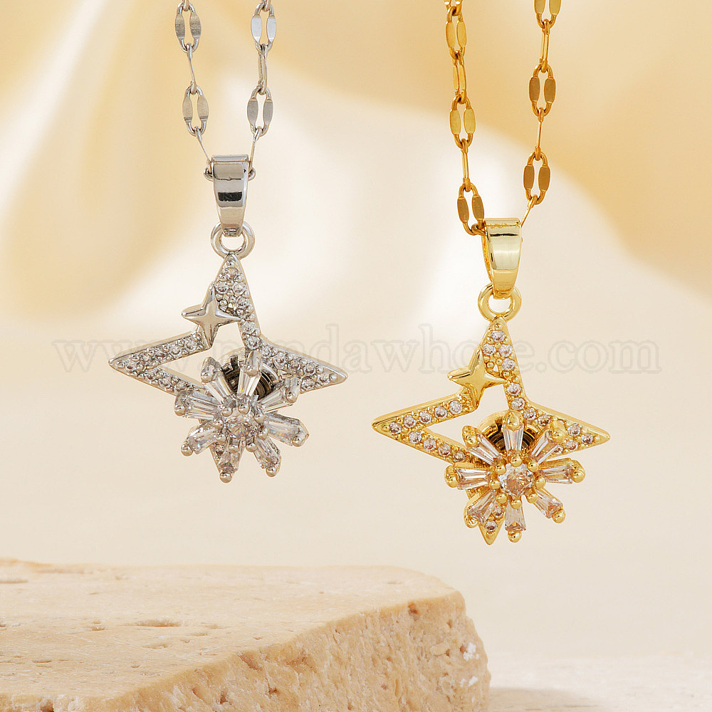 Ожерелья из латунной прозрачной кубической цирконии с подвеской в виде звезды и вращающейся мельницы для стильных девушек