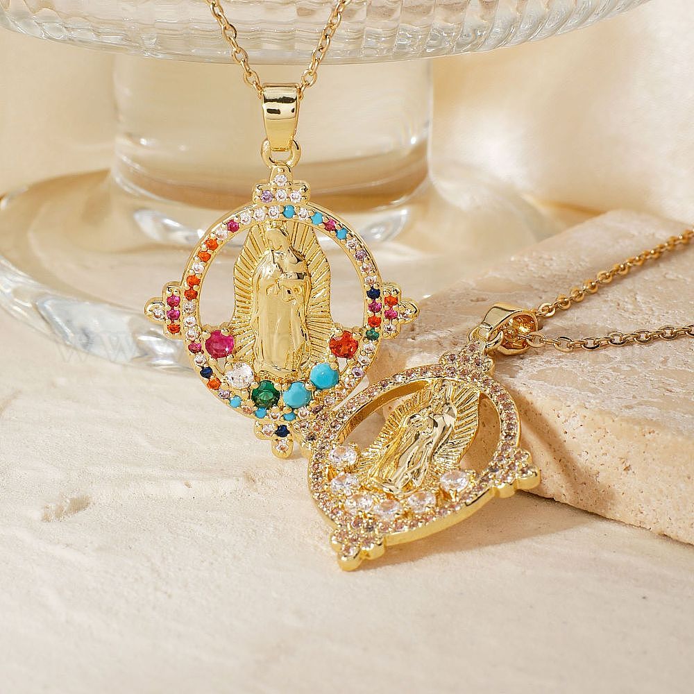 Латунный кубический цирконий полый овальный дизайн кулон Дева Мария изысканные ожерелья, золотые