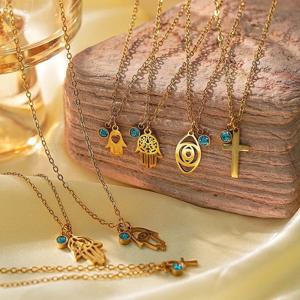 Ожерелья из нержавеющей стали с индиголитовыми стразами для женщин, золотые