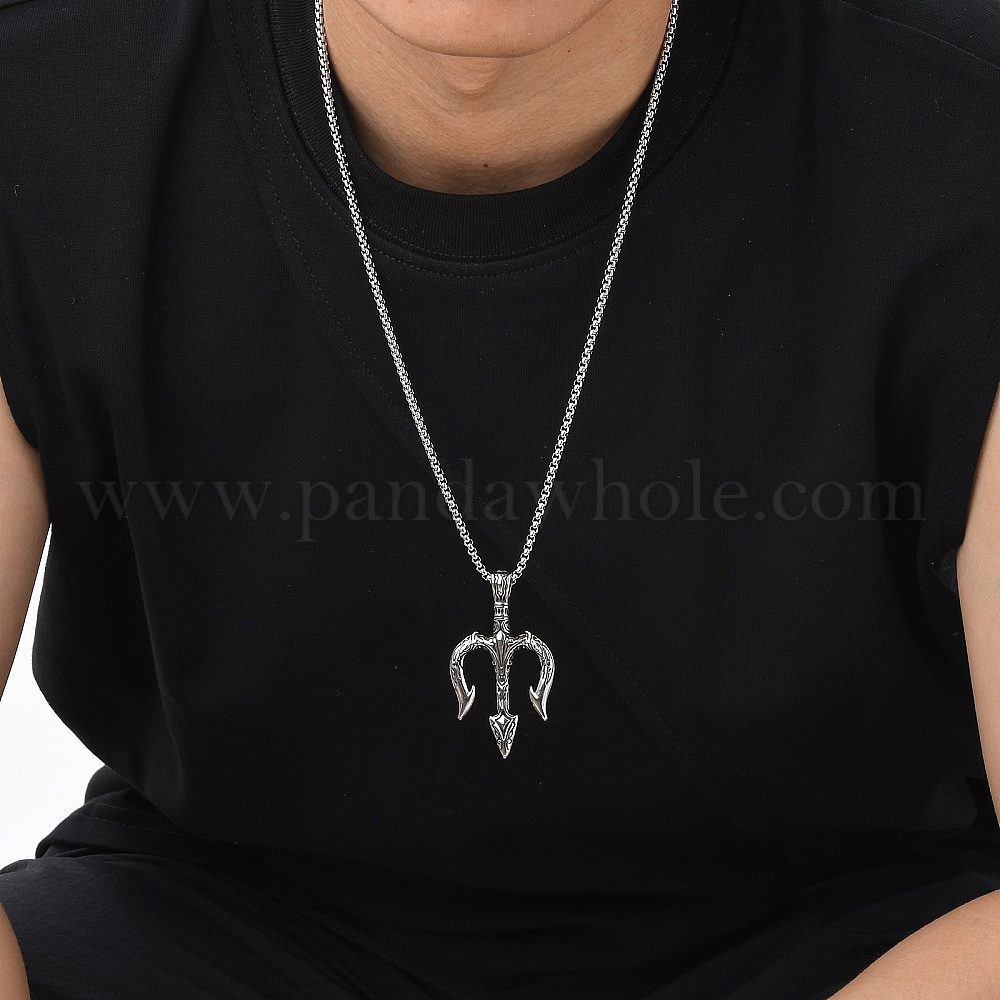 • Античный Серебристый & Цвет Нержавеющей Стали Ожерелья из нержавеющей стали с подвеской в виде трезубца викинга для мужчин, старинное серебро и цвет нержавеющей стали, 23.62 дюйм (60 см)