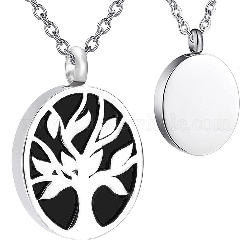 Овальная подвеска в виде дерева из нержавеющей стали с черной эмалью, урна для хранения пепла, мини-гроб с погребальной шкатулкой подвеска кабельная цепь ожерелья