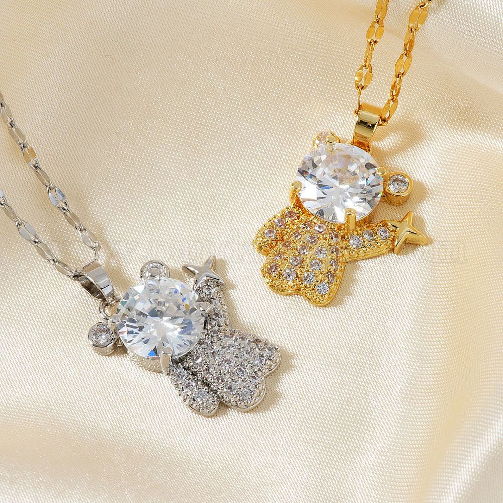 Латунные прозрачные кубические цирконии блестящие 3d ожерелья с подвеской в виде медведя