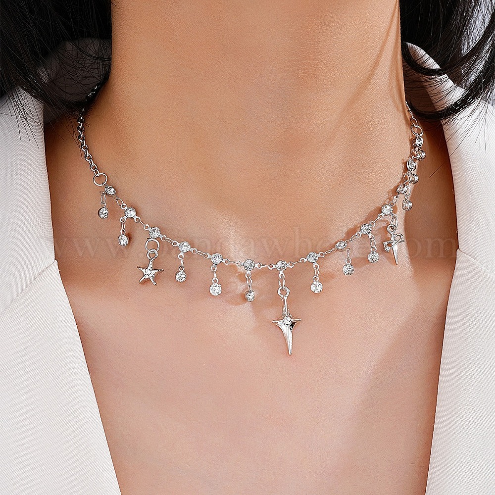 Сплав микро паве кубический цирконий подвеска нагрудник ожерелья для женщин, крест и звезда