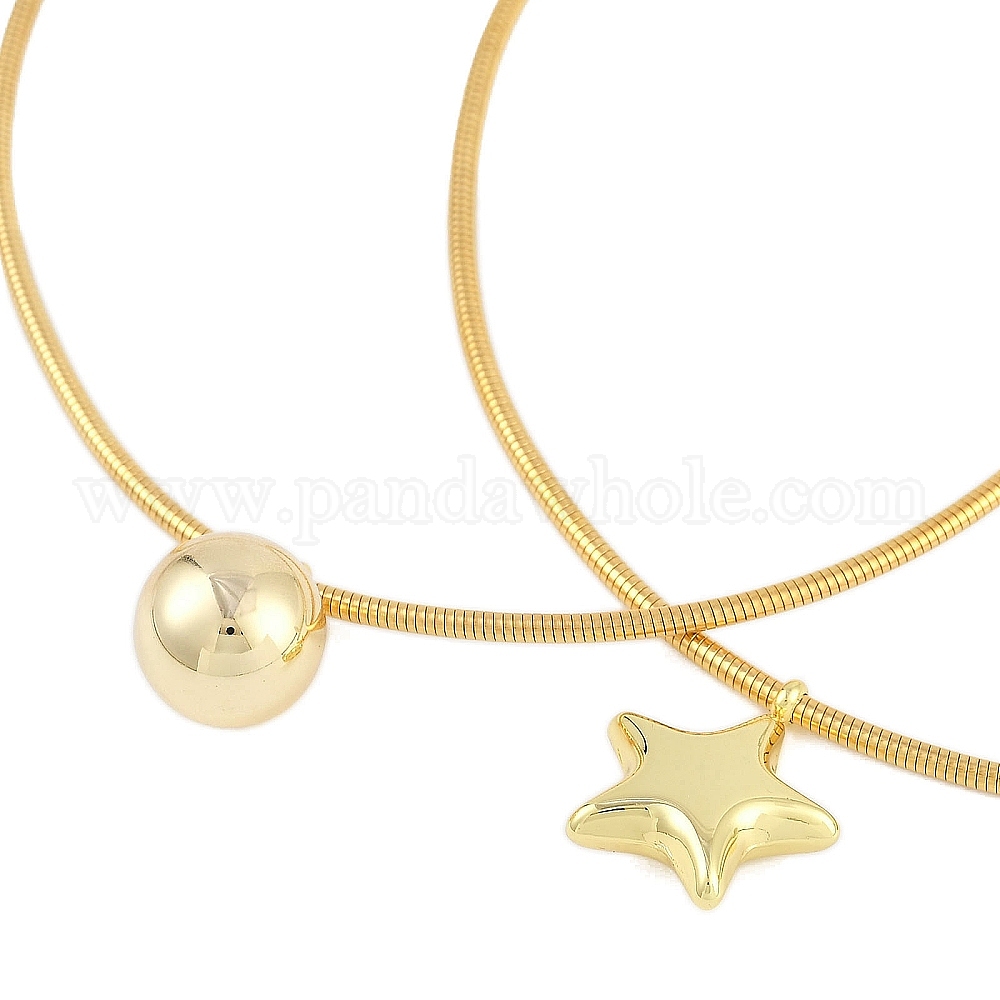 Ожерелья из нержавеющей стали с круглыми цепочками-змейками, круглый шар/звезда, золотые
