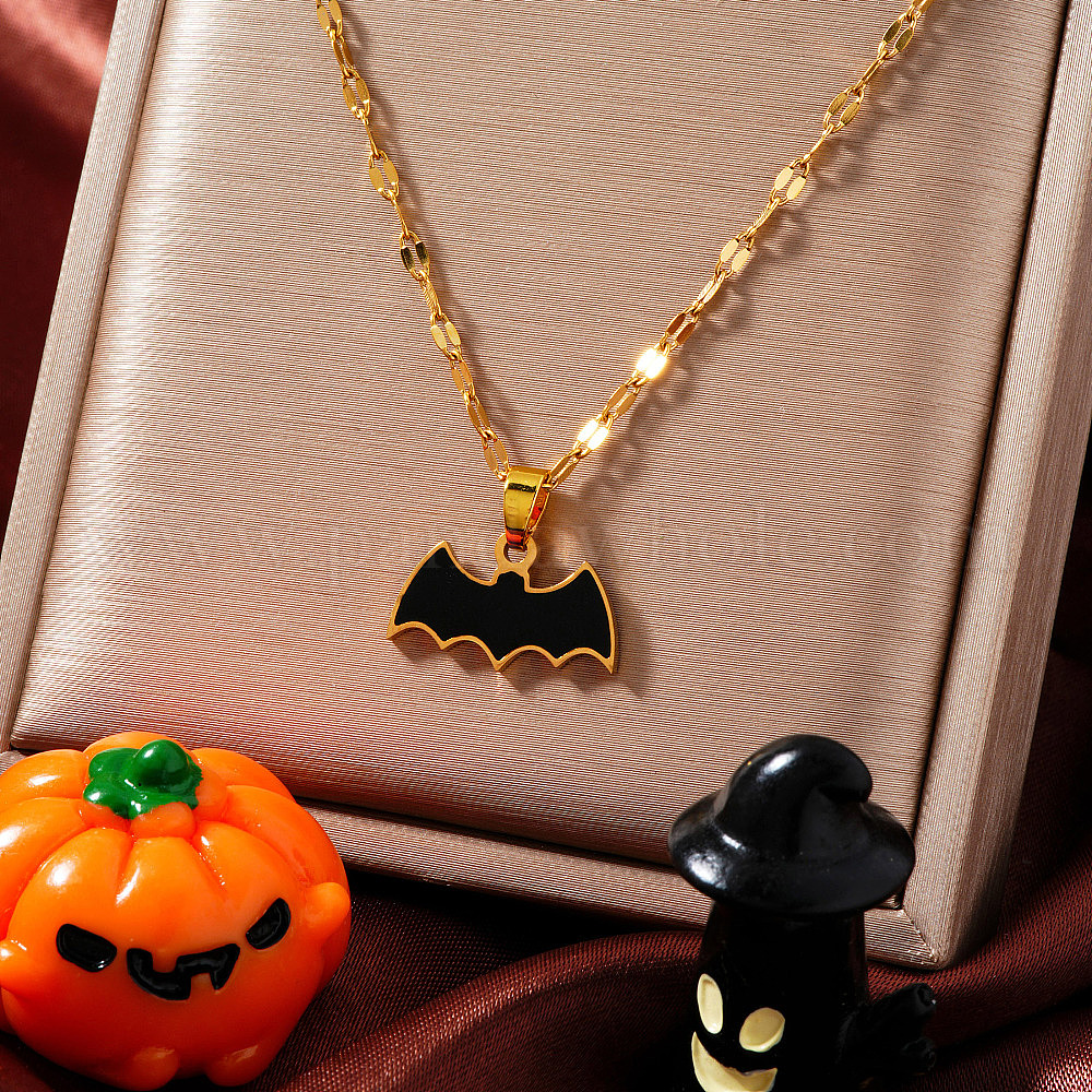 304 подвеска в виде летучей мыши из нержавеющей стали с эмалью на Хэллоуин, цепочка с узорами, золотые