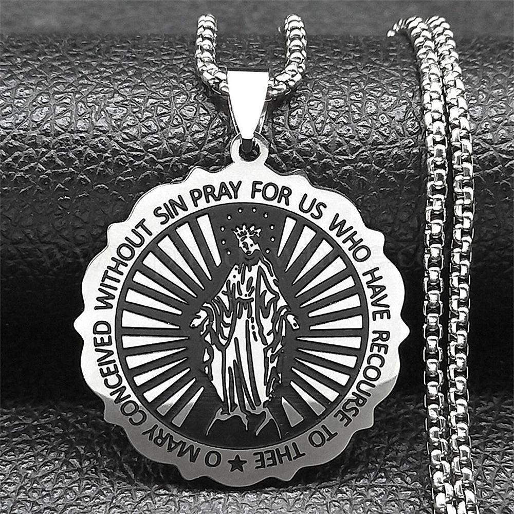 201 плоская круглая подвеска из нержавеющей стали с изображением Девы Марии в виде цепочки