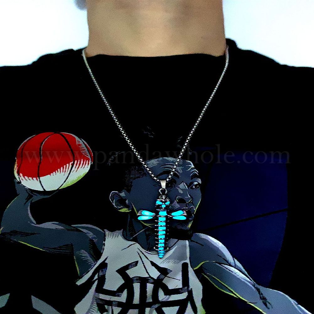 • Бирюза Ожерелья с подвеской в виде черепа и креста из светящегося сплава, ожерелья из стальной цепочки, бирюзовые, 21.65 дюйм (55 см)