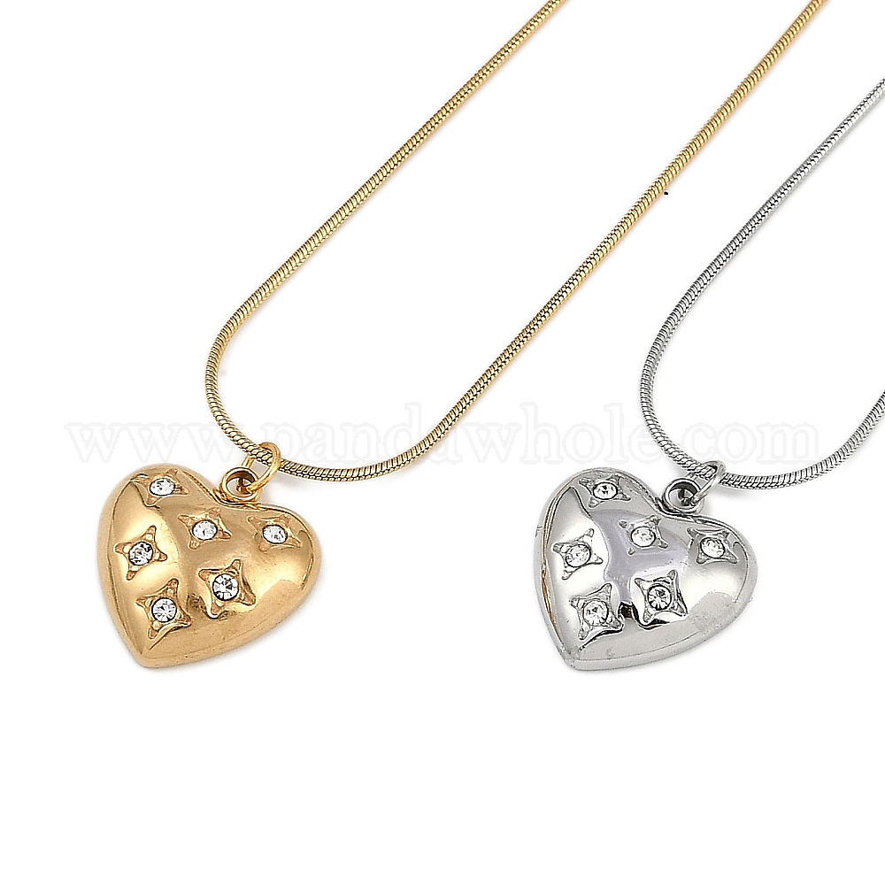 304 Женские ожерелья в форме сердца с подвеской из прозрачного кубического циркония из нержавеющей стали в форме круглой змеиной цепи