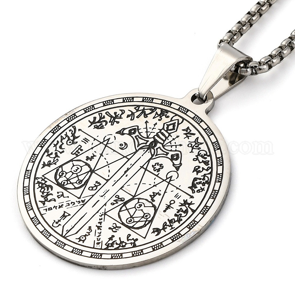 201 плоские круглые ожерелья из нержавеющей стали с рисунком меча для колдовства и предсказаний, ожерелья-цепочки для женщин (02Y84A)