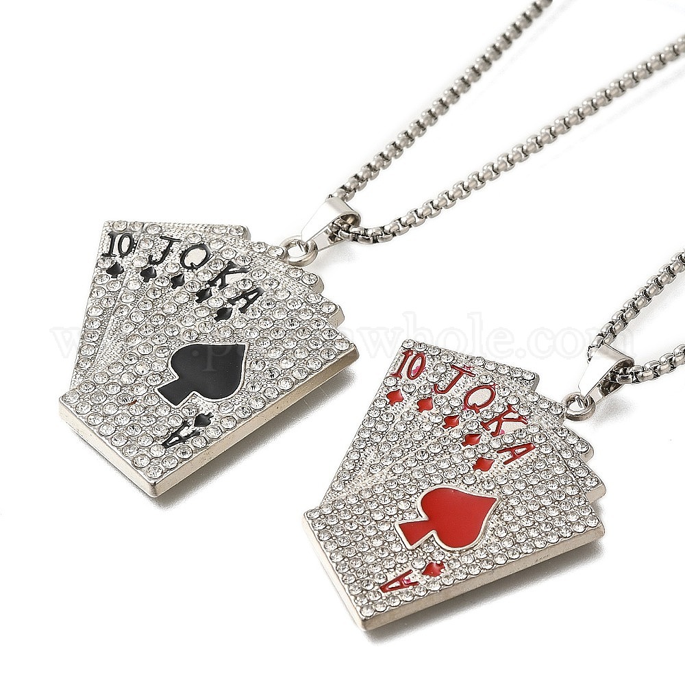 Сплав полный кристалл горный хрусталь игральные карты кулон ожерелья, 201 из нержавеющей стали коробки цепи ожерелья, цвет нержавеющей стали