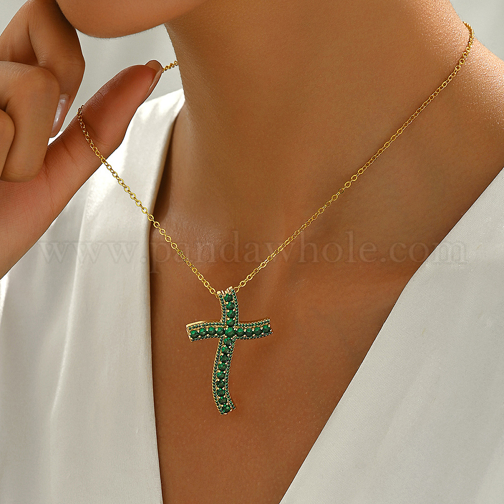 Латунный кубический цирконий крест подвеска кабель цепь ожерелья, золотые