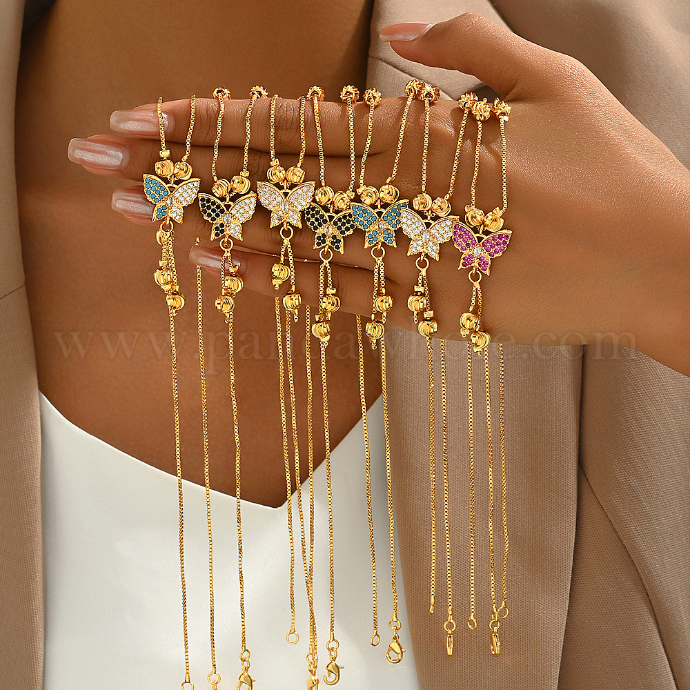 Модные латунные ожерелья с подвеской в виде бабочки из кубического циркония, кисточка ожерелье для женщин, реальный 18 k позолоченный (02YCDE)