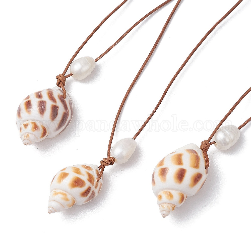 Летние пляжные ожерелья с подвесками из натурального пресноводного жемчуга и натуральных ракушек, коровья кожа ожерелья шнура