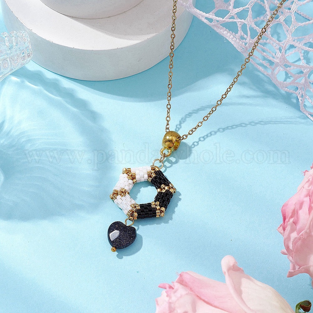 • Золотой 3d шестиугольные стеклянные подвески и сердечки из синтетического синего золота, 304 из нержавеющей стали кабель цепи ожерелья, золотые, 17.68 дюйм (44.9 см)