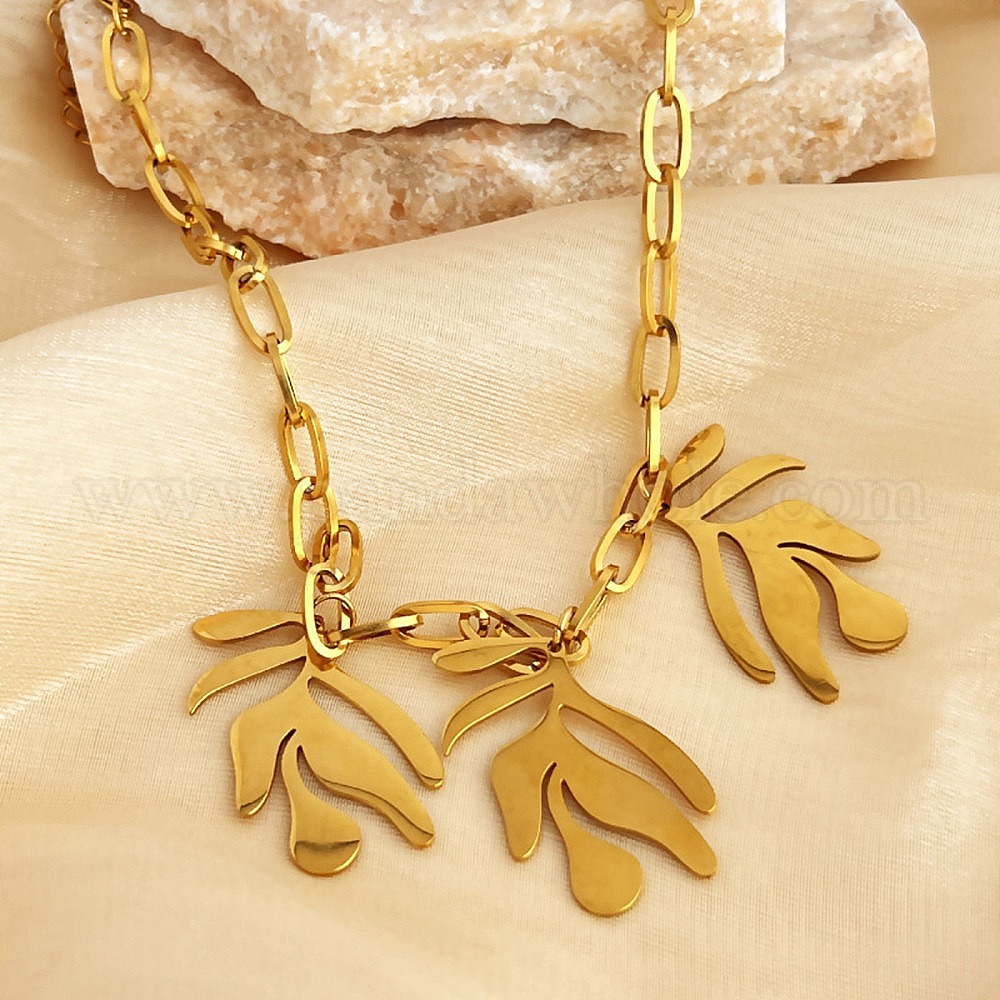 304 ожерелья из нержавеющей стали с подвеской в виде тройного листа и цепочкой-скрепкой