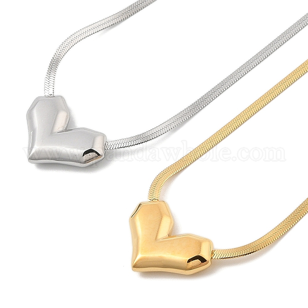 304 ожерелья в виде сердца из нержавеющей стали с плоской змеиной цепочкой для женщин