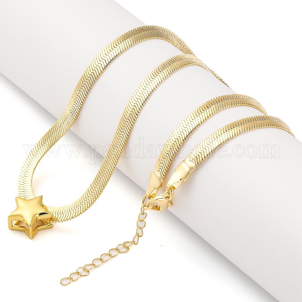 Ожерелья с подвесками в виде звезд из латуни, ожерелья с плоской змеиной цепочкой для женщин (02YHHR)