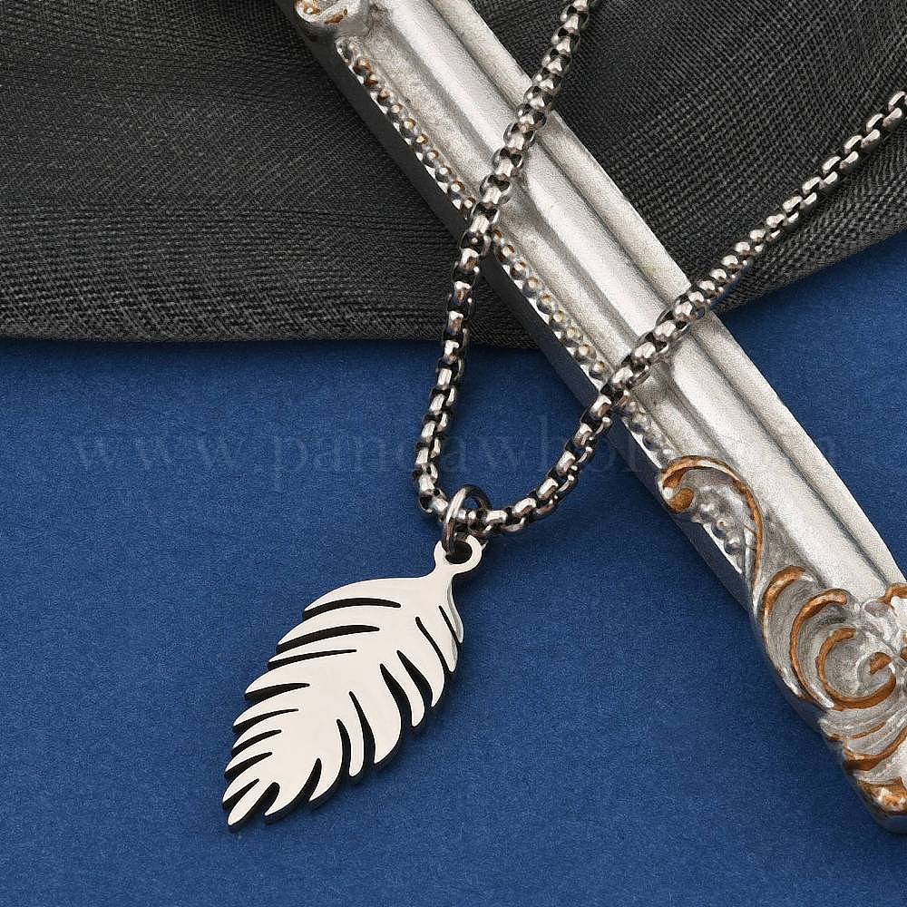 • Нержавеющая Сталь Цвет 201 ожерелья из нержавеющей стали с подвеской в виде листа, вырезанного лазером, для женщин и мужчин, цвет нержавеющей стали, 23.62 дюйм (60 см)