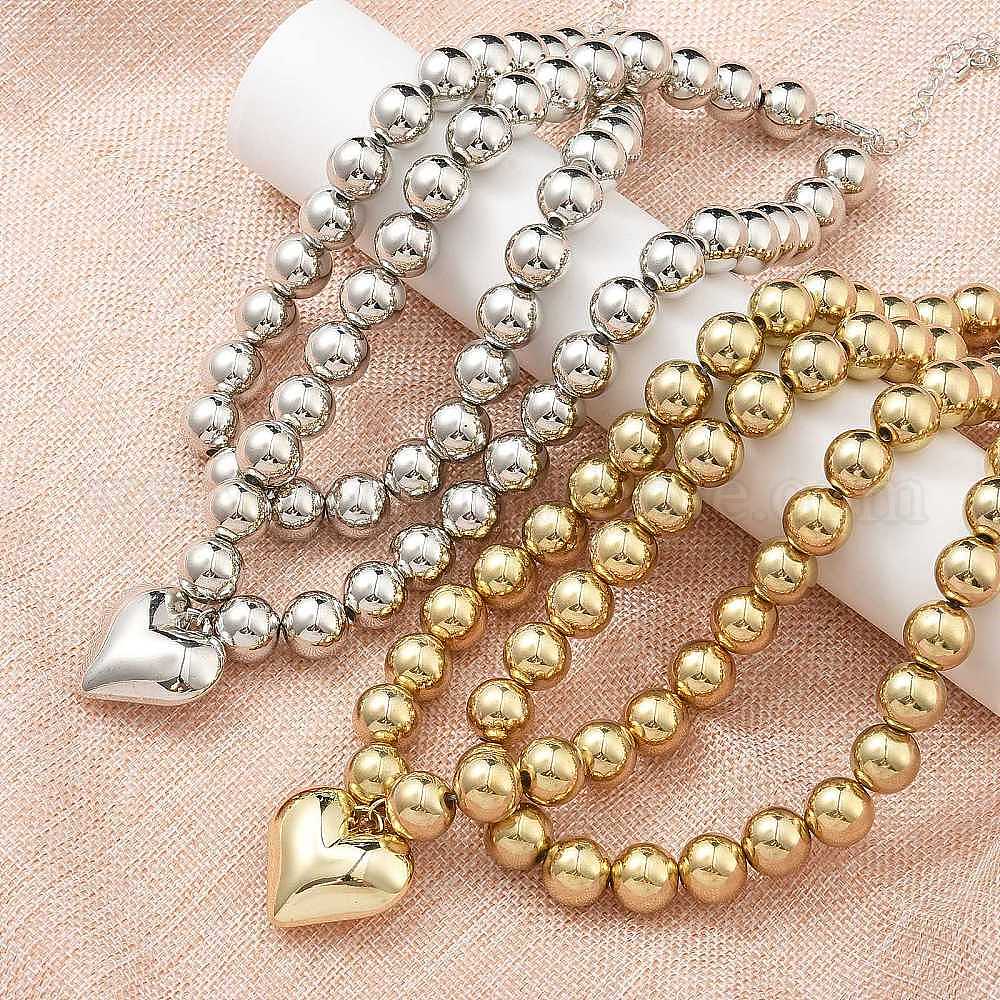 2шт 2 стили сплав сердце кулон ожерелья комплект, круглые ccb пластиковые бусины ожерелья для женщин