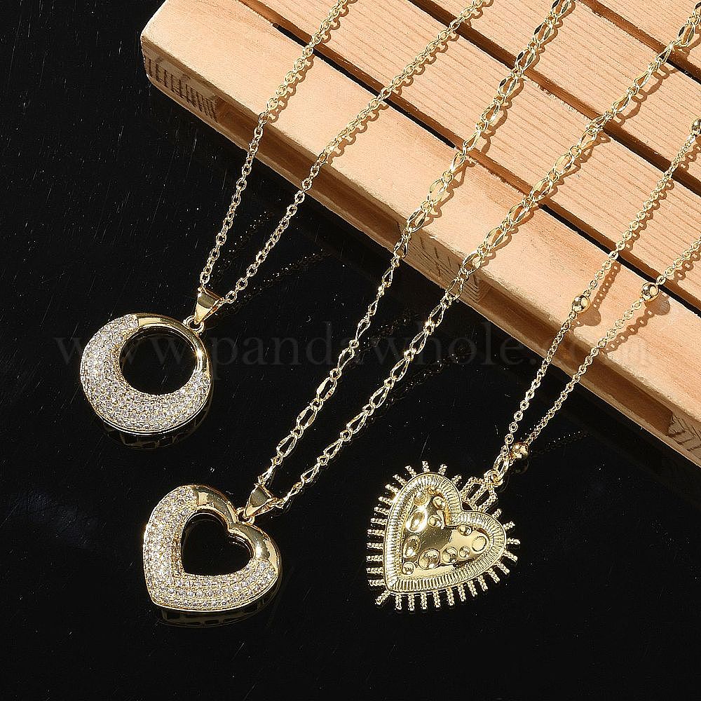 Ожерелья с подвеской из латуни с микропаве и прозрачным кубическим цирконием для женщин, луна / сердце, реальный 18 k позолоченный