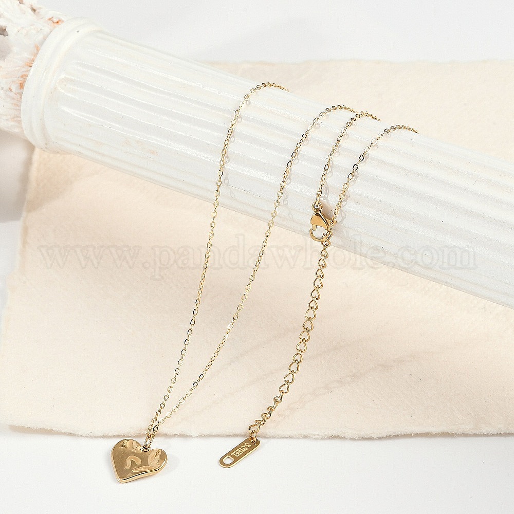 • Настоящее золото 18K Ионное покрытие (ip) 304 текстурированное ожерелье из нержавеющей стали с подвеской в форме сердца и цепочкой для женщин, реальный 18 k позолоченный, 17.68 дюйм (44.9 см)