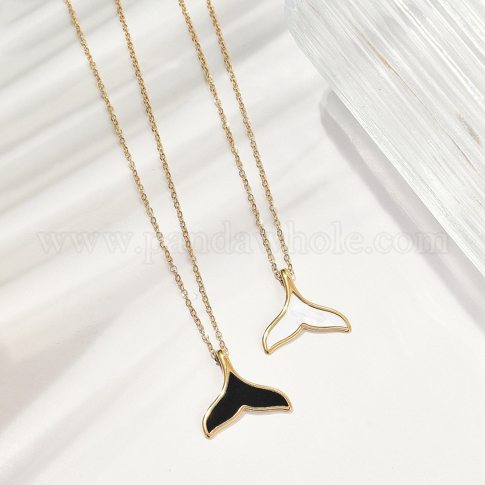 • Белый Ионное покрытие (ip) 304 подвеска из нержавеющей стали и пластика в виде китового хвоста, ожерелья из цепочки для женщин, реальный 18 k позолоченный, белые, 17.56 дюйм (44.6 см)
