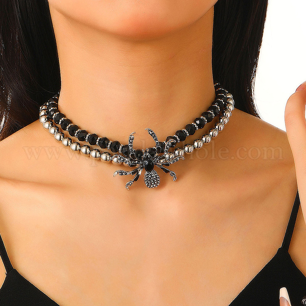 Готические ожерелья из сплава и пластиковых бусин, ожерелья с подвеской в виде паука в стиле панк для женщин, чёрные