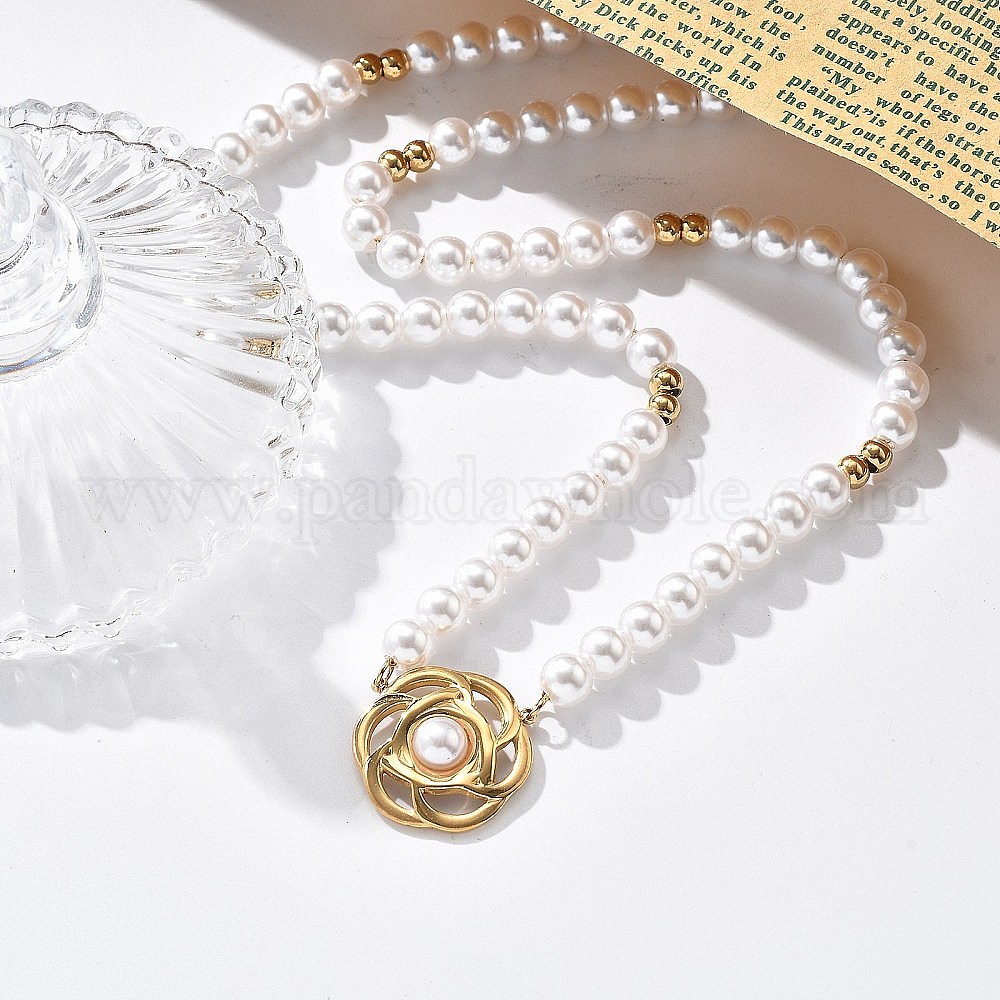 Ионное покрытие (IP) 304 ожерелья с подвесками в форме цветка из нержавеющей стали, белые пластиковые бусины из жемчуга для женщин