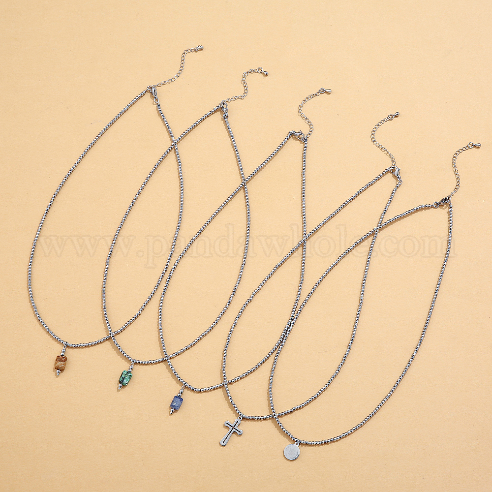 304 Женские ожерелья с подвесками из натуральных камней и шариковой цепочкой из нержавеющей стали (02Z4S8)