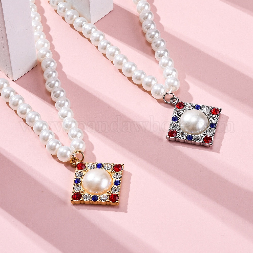 304 ожерелья из нержавеющей стали с разноцветными кубическими цирконами в форме ромба, белые пластиковые бусины из жемчуга для женщин
