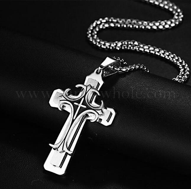 Ожерелья из нержавеющей стали с цепочками-коробками, Сплав с подвесками, крестик