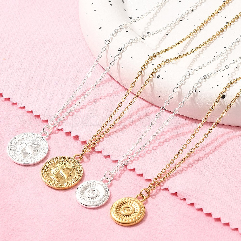 304 плоские круглые ожерелья из нержавеющей стали с подвеской в виде монеты/камеи для женщин