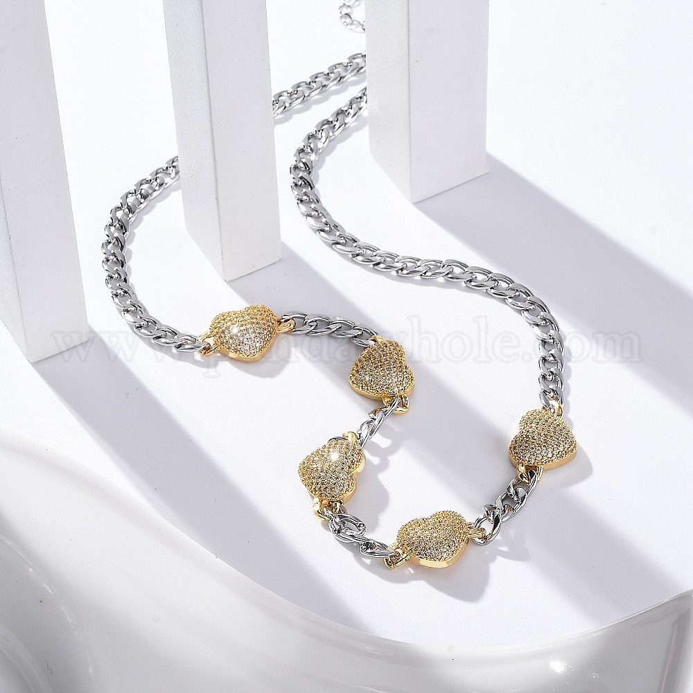 • Платиновый & Золотой Ожерелья с подвеской в виде сердца из латуни для женщин, без кадмия и без свинца, долговечный, платиной и золотом, 17.32 дюйм (44 см)