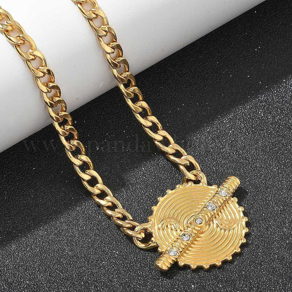 304 Женские колье с плоским круглым кулоном из нержавеющей стали и кристаллами горного хрусталя в виде витой цепочки