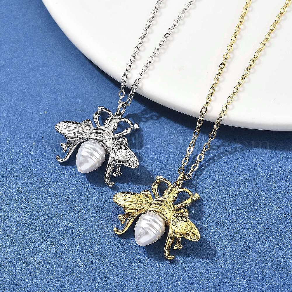 304 ожерелья из нержавеющей стали и пластика с подвеской в виде пчелы и цепочкой из кабеля, ионное покрытие (ip)
