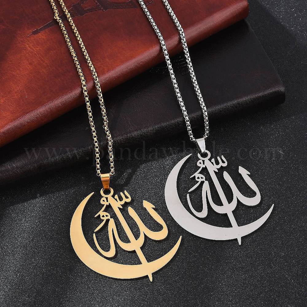 201 подвески из нержавеющей стали с луной и арабскими мотивами, ожерелья с цепочкой для женщин и мужчин