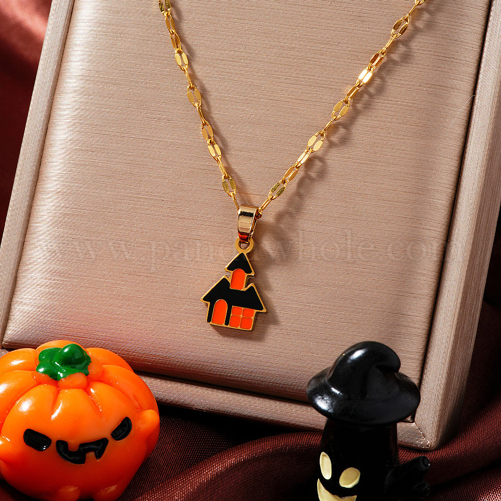 Хэллоуин 304 Кулон из нержавеющей стали с темно-оранжевой эмалью в виде дома с привидениями, европейско-американская бижутерия