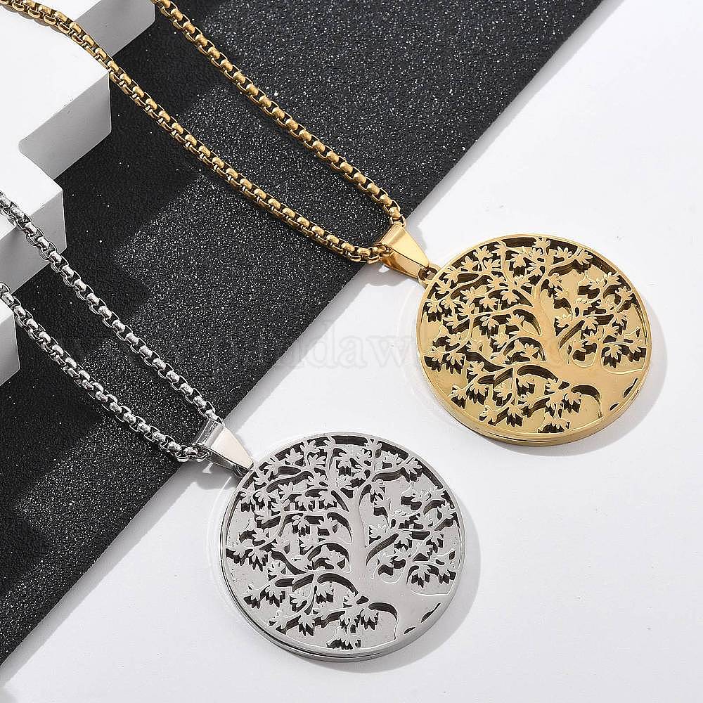 201 подвесные из нержавеющей стали ожерелья, плоские круглые с деревом