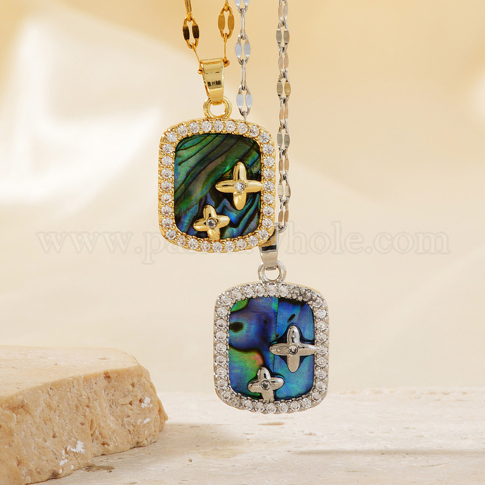 Простые латунные прозрачные кубические цирконии квадратные звездные подвески ожерелья, с Пауа оболочке (02ZX4J)