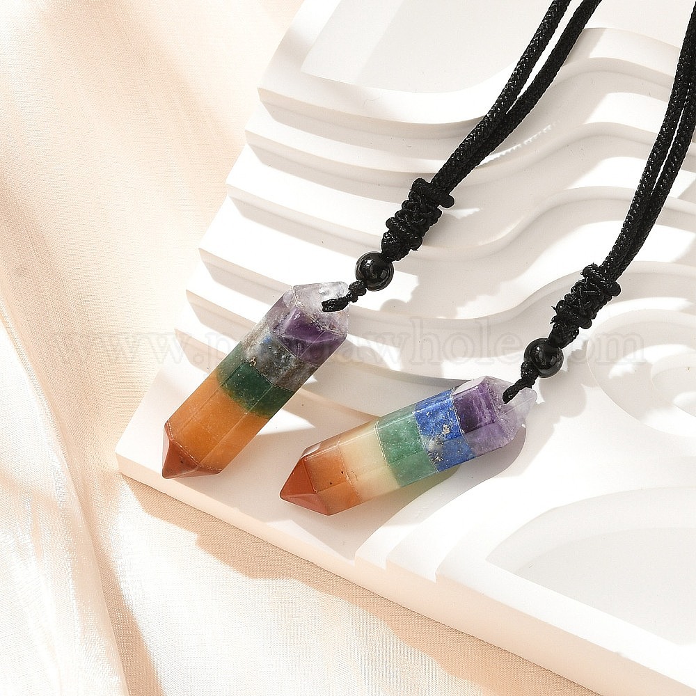 Чакра двойной терминал заостренные пулевидные каменные подвески ожерелья, ожерелья из черного нейлонового шнура