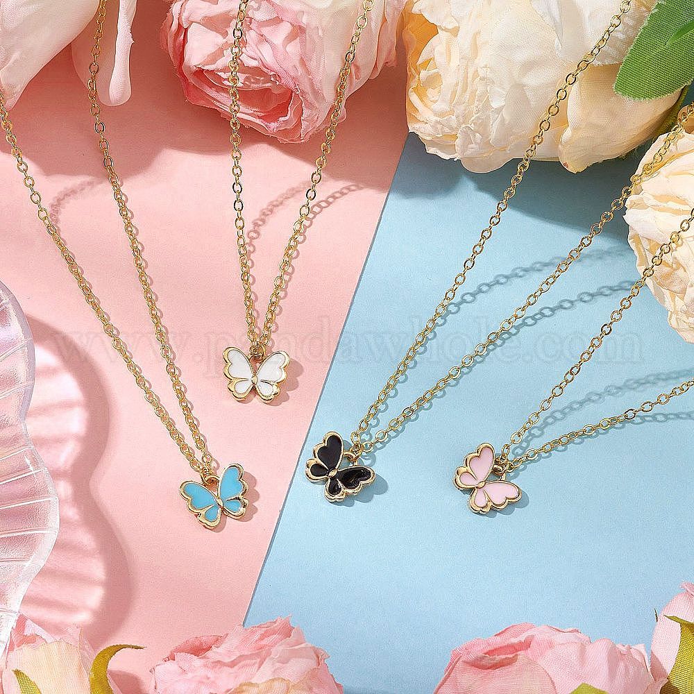 Ожерелья с подвесками в форме бабочки из сплава эмали, ожерелья-цепочки из латуни для женщин, золотые (02ZZZX)