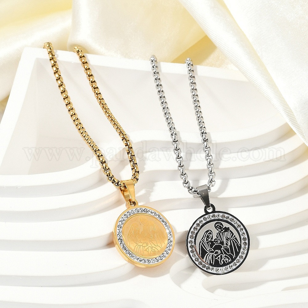 201 цепочка из нержавеющей стали с микропаве из прозрачного кубического циркония, плоская круглая подвеска для мужчин
