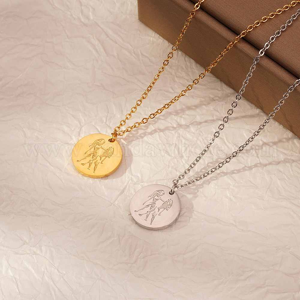 Стильные 304 плоские круглые подвески из нержавеющей стали с подвеской в виде знака зодиака Близнецы для ежедневного ношения женщинами